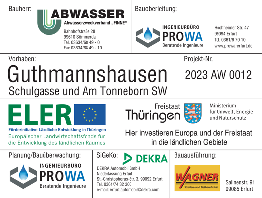 Geförderte Investitionsmaßnahmen Abwasser Großneuhausen - Bahnhofstraße Großneuhausen - Kläranlagenausbau Guthmannshausen - westliche Hauptstraße Mannstedt - östlicher Bereich Rastenberg Amselweg Riethnordhausen - Erfurter Straße Riethnordhausen - Untere Dorfstraße Guthmannshausen Schulgasse und am Tonneborn SW