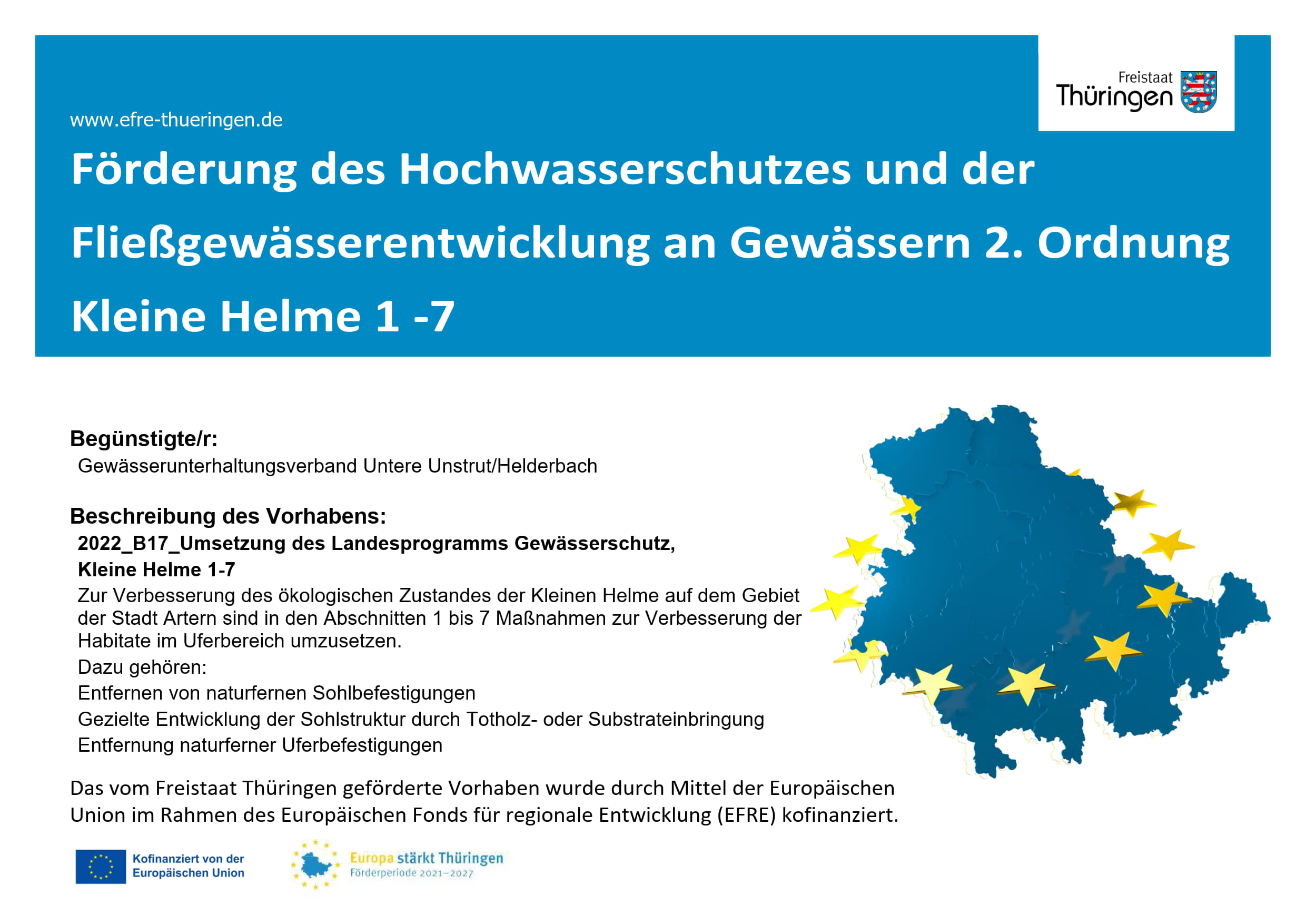 Geförderte Investitionsmaßnahmen des GUV Kleine Helme EFRE_Plakat iHWSK Monna Plakat iHWSK Helderbach Plakat iHWSK Lossa Scherkonde Plakat